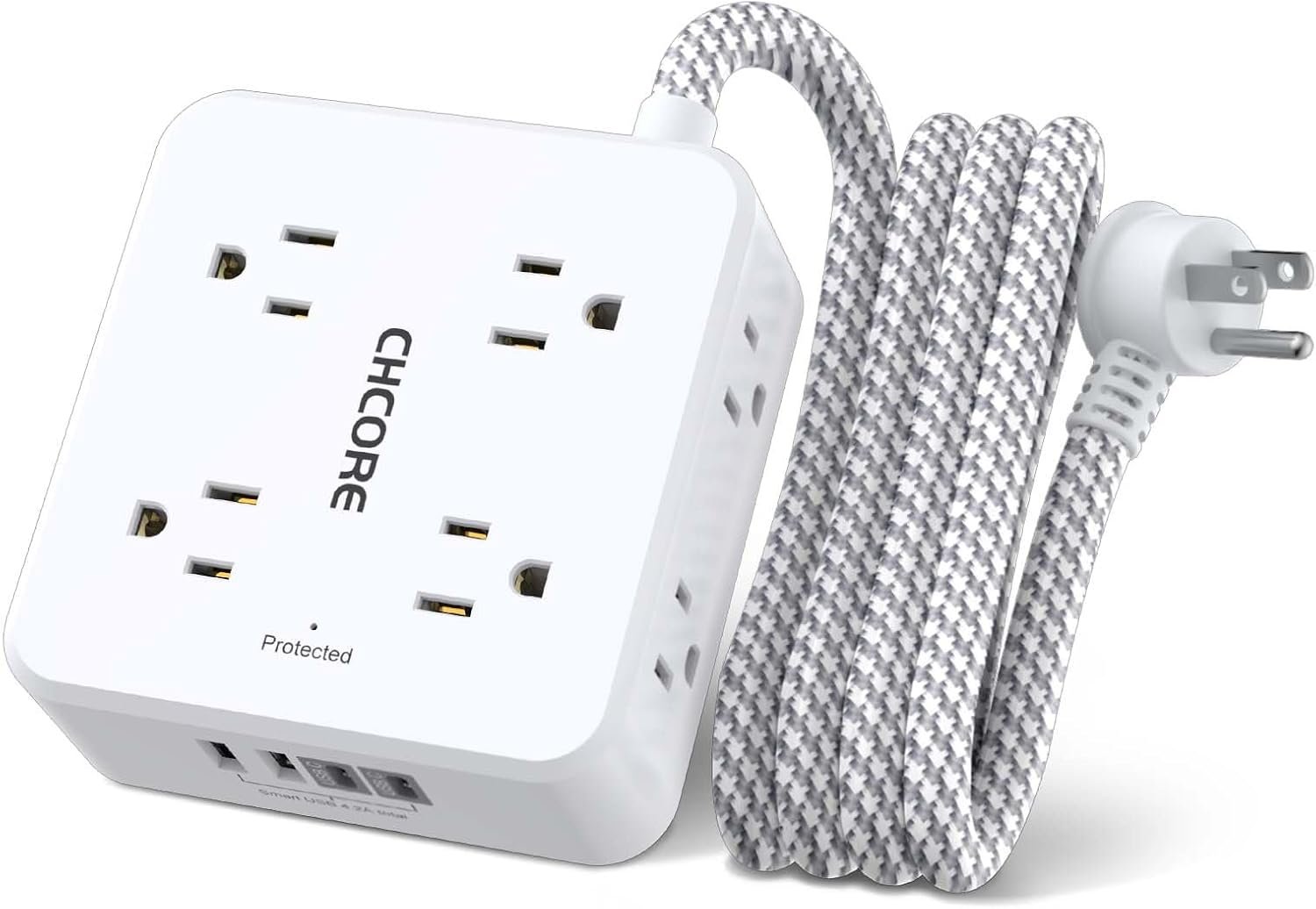 【5 Ft Braided extension cord with Flat Plug】- 5 Feet Right Angled Flat Plug power cord makes it more flexible, the two mounting holes on back allows this power strip to be securely installed in various applications. Environmental protection and fire-resistance PC shell with flame retardant at 1382℉ makes it more durable and longer lifetime.